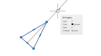 Daarna maak je een Path Array met het commando ARRAY, je selecteert het driehoekje als object om te arrayen (hm, raar woord), de 3D polylijn als path en dan kun je eventueel de tussenafstand aan passen. En voilà, een 3D Polyline met een stijl: