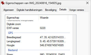 In de eigenschappen van de foto kun je deze gegevens zien.