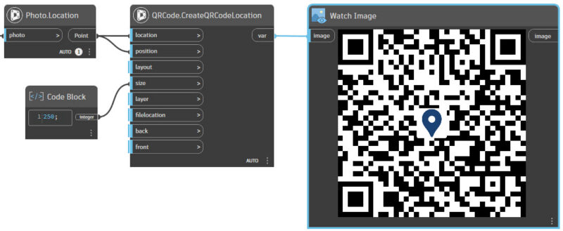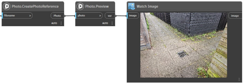 Je kunt bijvoorbeeld hiermee vervolgens een Block plaatsen in Civil 3D met de naam of pad naar de afbeelding als Attribute waarde. Of de foto als Image Reference. Je kunt in Dynamo ook de foto zelf bekijken, als controle of het om de juiste foto gaat.